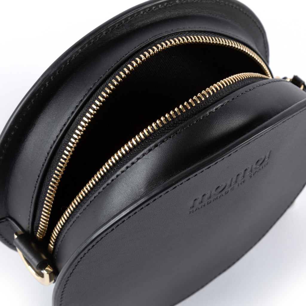 BOMBOM is a round handbag. You can use it as a crossbody bag across your body or on your shoulder. The strap is adjustable and detachable.
